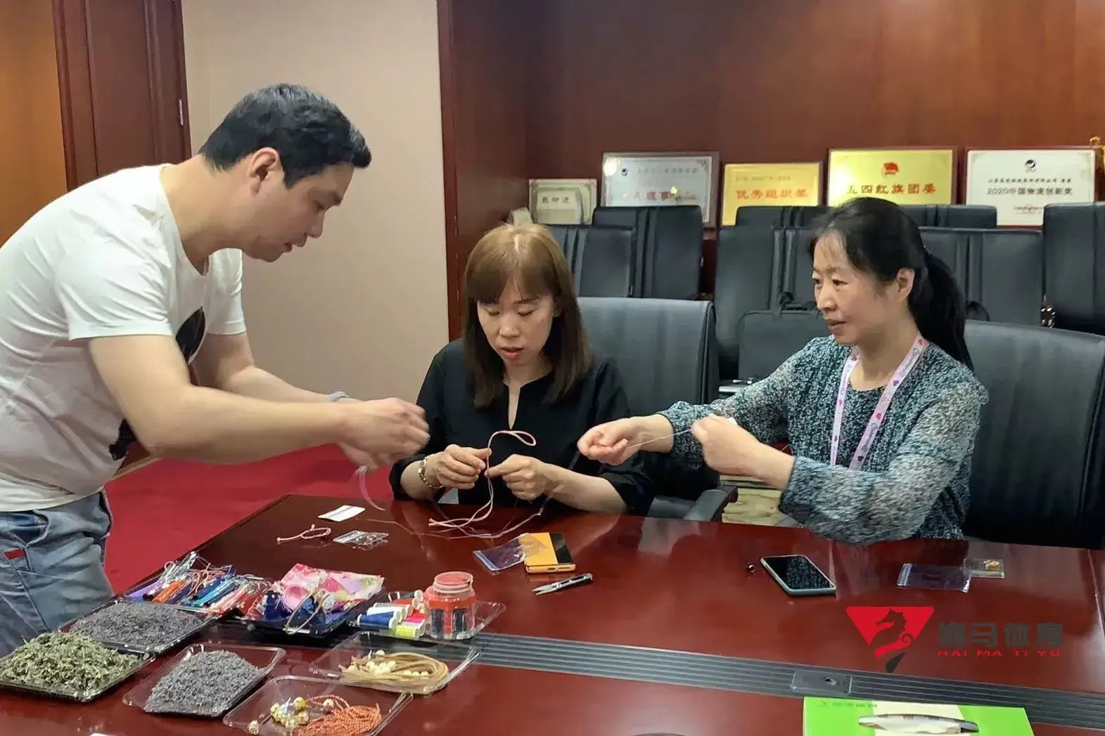 制作前,非凡体育的手工老师首先介绍了端午的习俗以及端午节制作香囊与五彩绳的来历,让大家在活动前了解端午的民俗文化,手工老师将精心准备的有着美好寓意的五色彩绳、色彩绚丽的香包袋以及清香的艾草薰衣草,送到职员手中,携手制作香包和五彩绳。